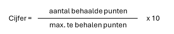 Een veelvoorkomende manier om het cijfer voor een praktijkopdracht te berekenen, is om het behaalde aantal punten te delen door het maximaal te behalen aantal punten en dit vervolgens te vermenigvuldigen met 10. In feite neem je dan een percentage van het aantal behaalde punten.
