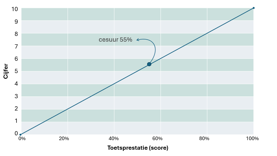 Grafiek 1: Lineaire cijferbepaling bij een cesuur van 55%