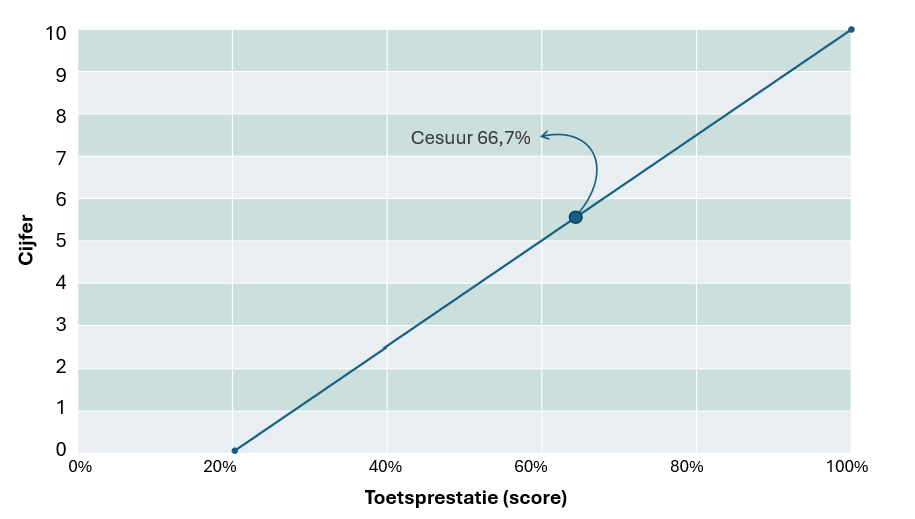 Grafiek 2: lineaire cijferbepaling bij een cesuur van 66,7%